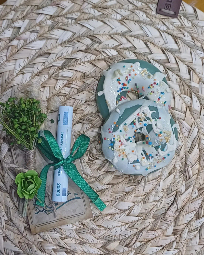 صابون دونات آبان، مناسب برای عیدی و گیفت در عید غدیر. تزئین سرویس بهداشتی