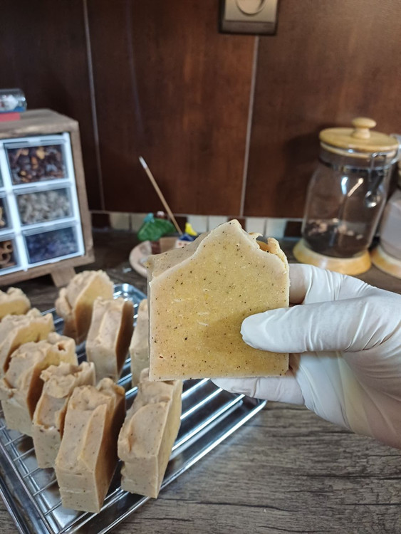 صابون زردچوبه آبان تهیه شده از روغنهای ارگانیک نارگیل ،زیتون ،کرچک ،زردچوبه ، آرگان پودر زردچوبه هندی